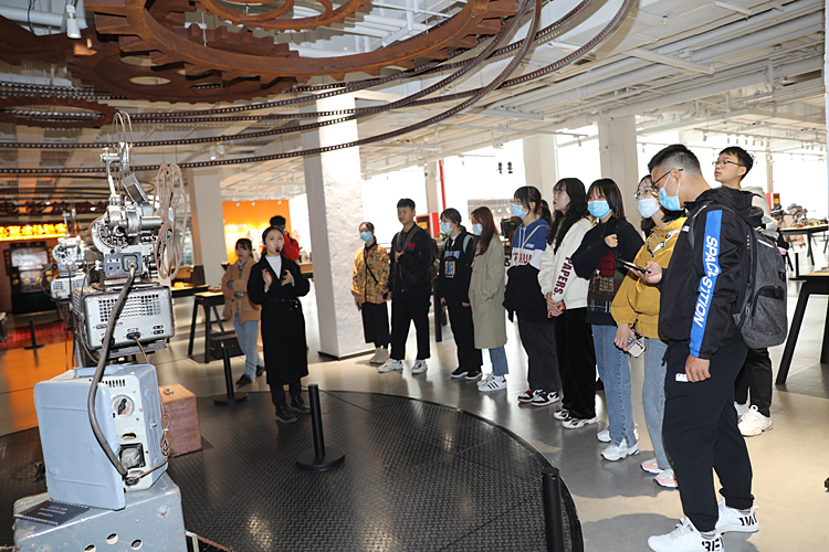 活动中,师生们参观了西影星光大道、厂史馆、“电影海报中的一带一路”主题海报展、电影制作技术科普体验区、放映机收藏博物馆、影屋等地,深入了解了西影建厂60多年来的发展脉络及西影人的创业艰辛与匠心成就,也从电影工业的发展变迁和技术迭代中,深切感受到新中国成立七十多年来的历史巨变尤其是改革开放四十年来焕发出的蓬勃生机以及在经济、科技、文化、社会等领域取得的辉煌成就。师生们还聆听了西影集团刘婧老师主讲的一堂音乐与党性教育相融合的“音乐党课”,汲取精神力量,追溯初心使命。刘婧以史串歌,借歌弘史,通过《山丹丹开花红艳艳》、《保卫黄河》、《南泥湾》等延安时期的经典红色音乐作品,阐释了陕北民歌在中国革命发展历程中发挥的重要作用。在熟悉的旋律中,全场人员一同高唱,激情高扬,在歌声中触摸信仰的力量,感受真理的光芒,体验了“音乐党课”的独特魅力。
