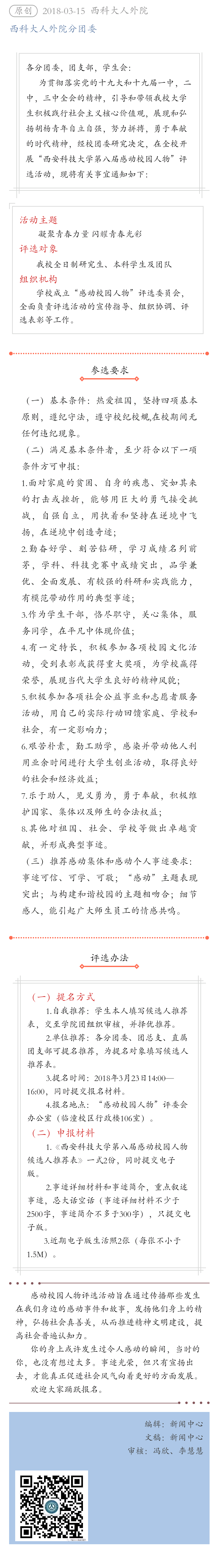 关于举办“304永利登录入口第八届感动校园人物” 评选活动的通知