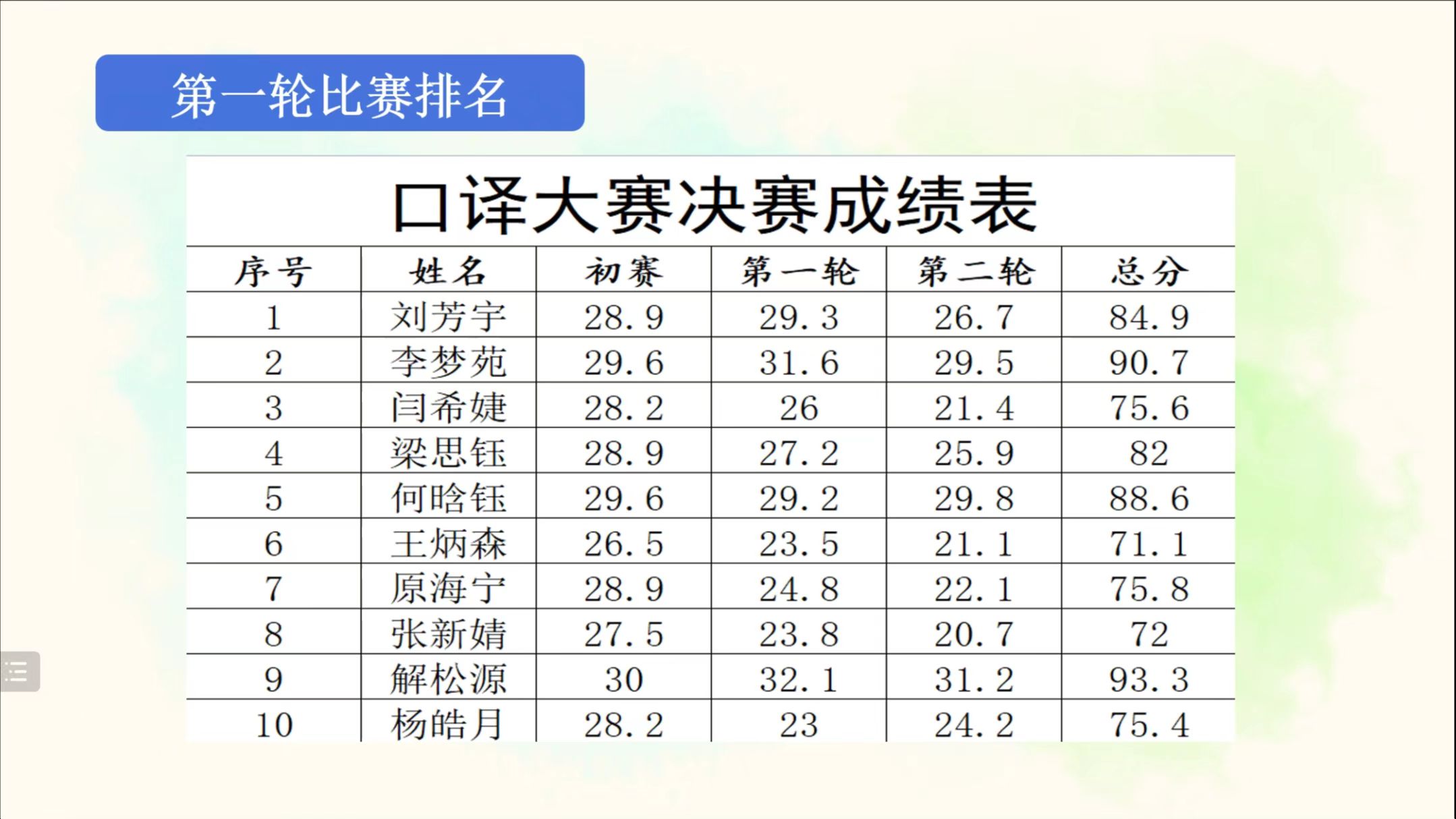 大赛过程中,10位选手凭借扎实的技能基础和过硬的专业素质,充分展示了口译学习的功底及丰富的知识储备。经过激烈角逐,英语1901班解松源获得本次比赛特等奖,英语1901班李梦苑和英语1902班何晗钰分获一等奖,英语1901班刘芳宇和英语1801班梁思钰分获二等奖,自动化2104班原海宁和英语2001班闫希婕分获三等奖,英语1901班杨皓月、电气工程及其应用(合作办学)2001班张新婧和测绘工程1901班王炳森分获优秀奖。