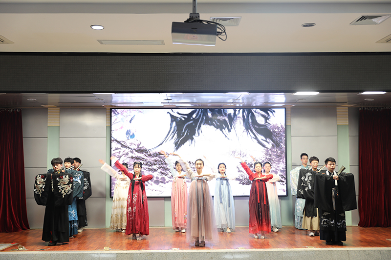 中场休息期间,由潇湘古典文学社为现场观众们献上了伟大爱国诗人屈原的作品《山鬼》改编的经典现代歌舞表演,深情醉人的音乐、翩跹的舞姿为诗词大会平添了古典优雅的诗韵之美。李宇还同一等奖选手段阳阳进行的关于“酒”字的飞花令现场表演为观众们带来了精彩的强者之战,也为比赛增色不少。
