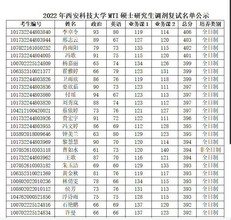 2022年304永利登录入口MTI硕士研究生调剂复试名单公示